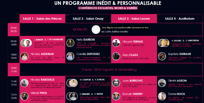 L’événement se distingue aussi par la qualité de ses intervenants et par les études de cas concrets présentées, offrant des retours d’expérience pratiques et inspirants. C’est aussi une excellente occasion de rencontrer d’autres professionnels du référencement et d’échanger sur les bonnes pratiques. Évidemment, les personnes les plus influentes étaient bien sûr présentes. Un véritable plaisir de revoir certaines personnes et d’en rencontrer de nouvelles !