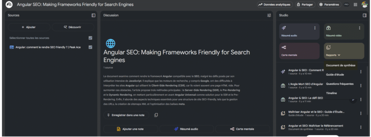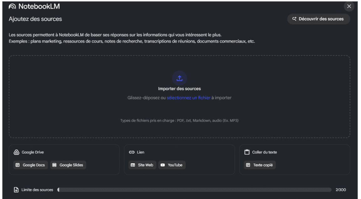 Contrairement aux autres outils d’IA généralistes, NotebookLM excelle dans l’analyse approfondie de contenus spécifiques que vous lui fournissez, transformant des concepts complexes en informations claires et accessibles.