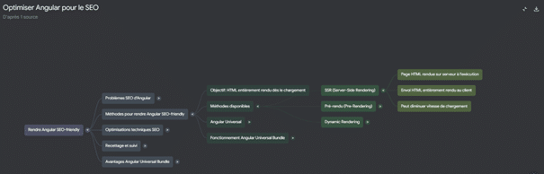 NotebookLM génère automatiquement des cartes mentales IA qui permettent de :