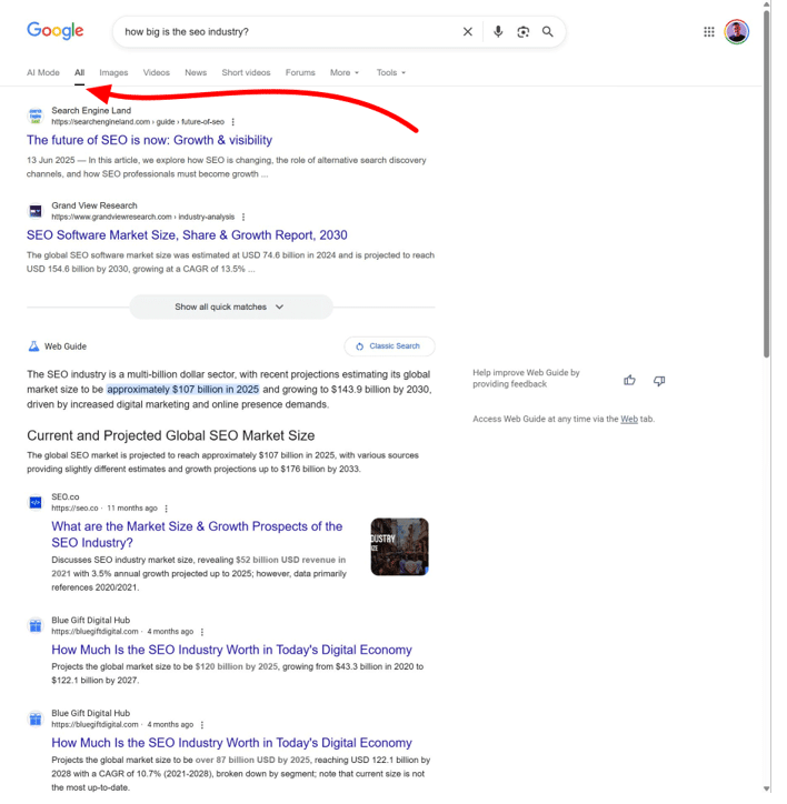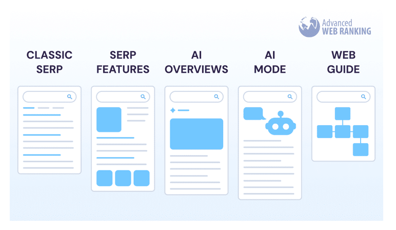 Différence entre AI Overview vs. AI Mode vs. Web Guide