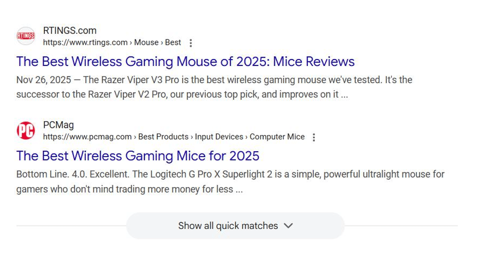 1. Les résultats « FastSearch » : Tout en haut, quelques résultats organiques familiers apparaissent. Ils proviennent de la technologie FastSearch de Google, basée sur le système classique mais optimisée pour la vitesse.