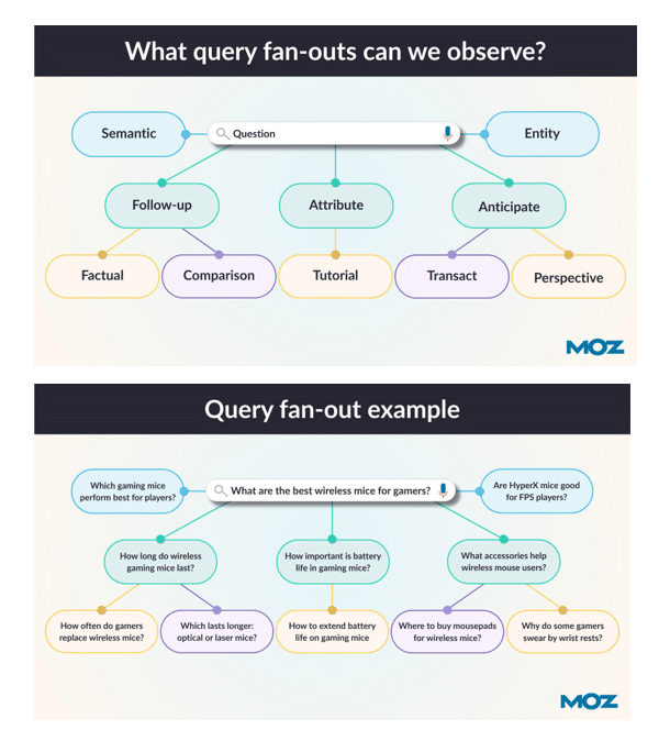 Web Guide utilise également le système de Query Fan-out. Voici le fonctionnement hypothétique selon Moz :