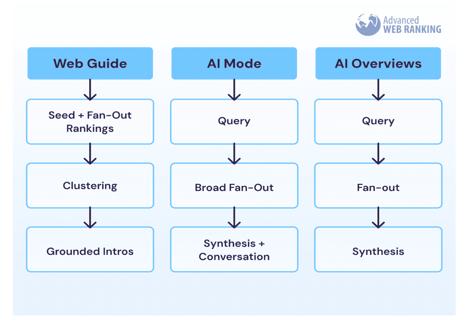 | Fonctionnalité | AI Overview | AI Mode | Web Guide |