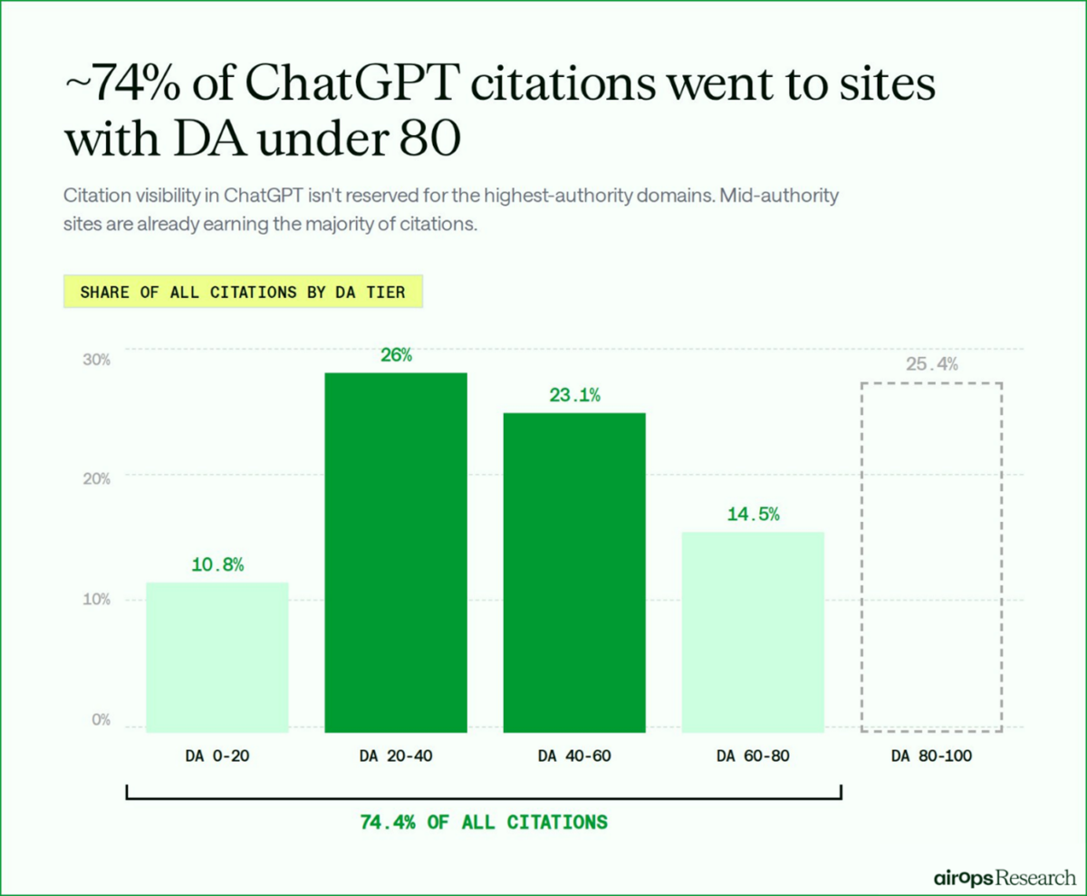 - 74 % des citations vont à des sites ayant un DA inférieur à 80.