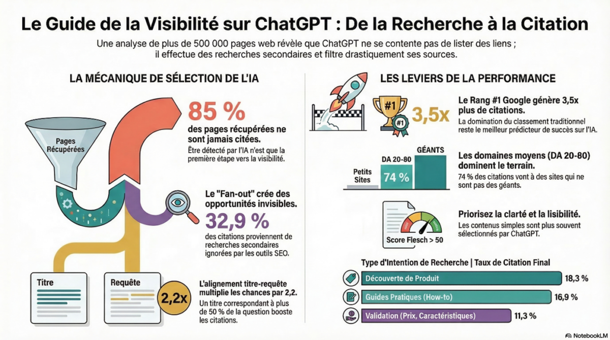 Cela prouve que l’autorité vous fait entrer dans la base de données de travail de ChatGPT, mais que le manque de « Content Fit » (ajustement du contenu) vous en expulse lors de la synthèse finale. Pour les marques de niche (DA 40-80), c’est une opportunité historique de détrôner les géants en misant sur une modularité et une clarté que les grands éditeurs négligent.