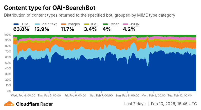Les logs vous permettent d’identifier les types de pages téléchargées par les bots LLM et de pouvoir comparer le taux de téléchargement des fichiers Markdown vs. Les autres types de fichiers, notamment HTML