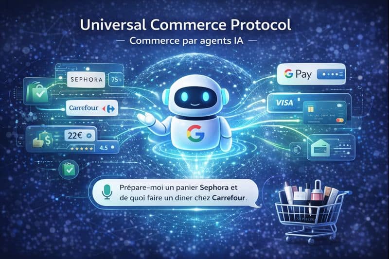 Google vient de lancer une offensive majeure dans le commerce conversationnel avec l’Universal Commerce Protocol. Cette initiative transforme fondamentalement la façon dont nous achetons en ligne, en passant d’un monde de « visites de sites web » à un monde de « flux de données » où les agents IA orchestrent l’expérience d’achat de bout en bout.