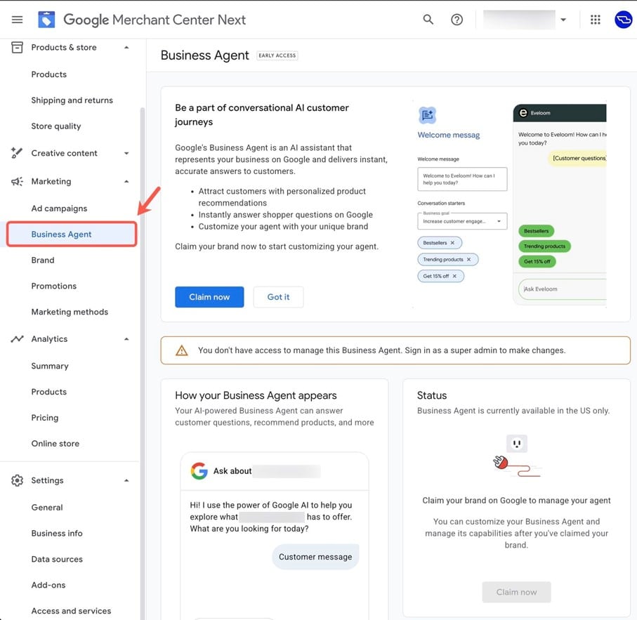 Les détaillants américains éligibles pourront activer et personnaliser cet agent à leur marque dans Merchant Center.