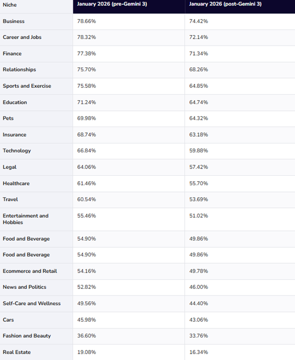 Dans le même temps, 30 267 nouveaux domaines (33,9 %) sont apparus après le lancement de Gemini 3.