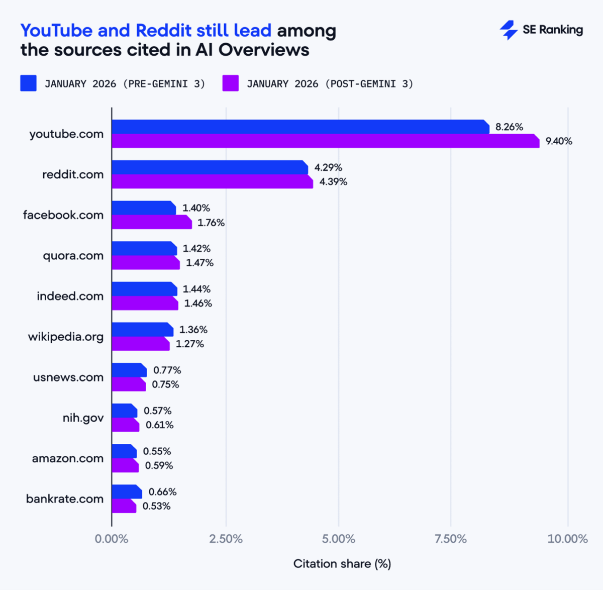Le paysage post-Gemini 3 n’est plus un web diversifié, mais un jardin clos dominé par quelques plateformes. Le pool global de domaines uniques cités a rétréci de 14 %.