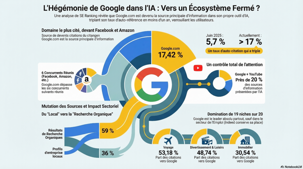 Le verdict est clair : Google redéfinit les contours de l’économie digitale en s’érigeant comme destination finale plutôt que comme intermédiaire. En triplant son taux d’auto-citation, le géant de la recherche impose un nouveau paradigme de centralisation extrême.