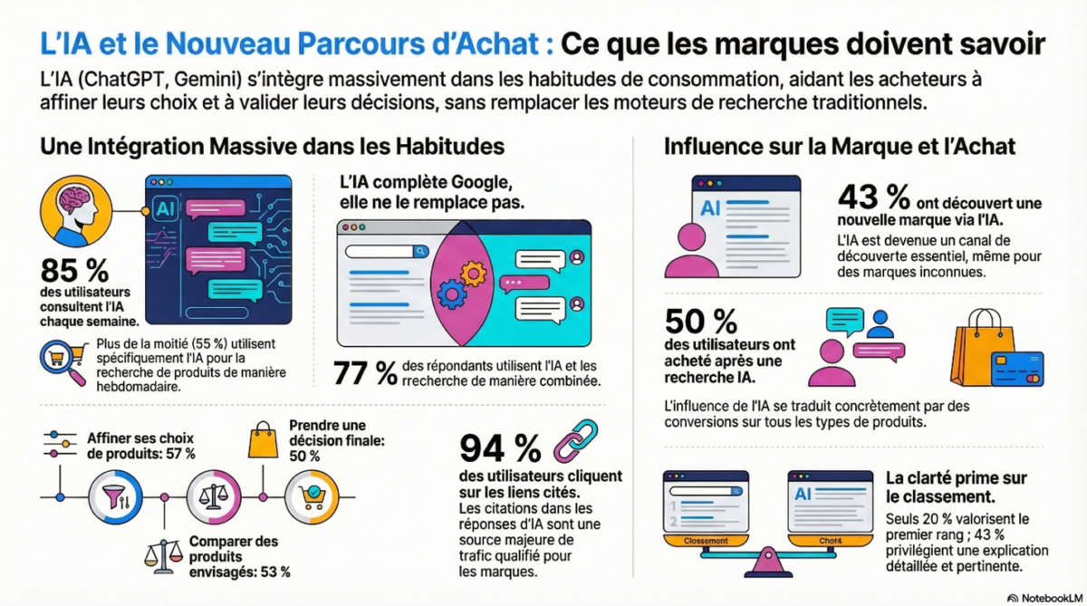 Pour décrypter cette mutation, une étude pivot menée en décembre 2025 auprès de 1 030 consommateurs américains révèle une réalité incontournable. L’IA est passée de gadget expérimental à une infrastructure critique du commerce. Pour les stratèges, la question n’est plus de savoir si l’IA impacte le SEO, mais comment dominer ce nouvel écosystème hybride.