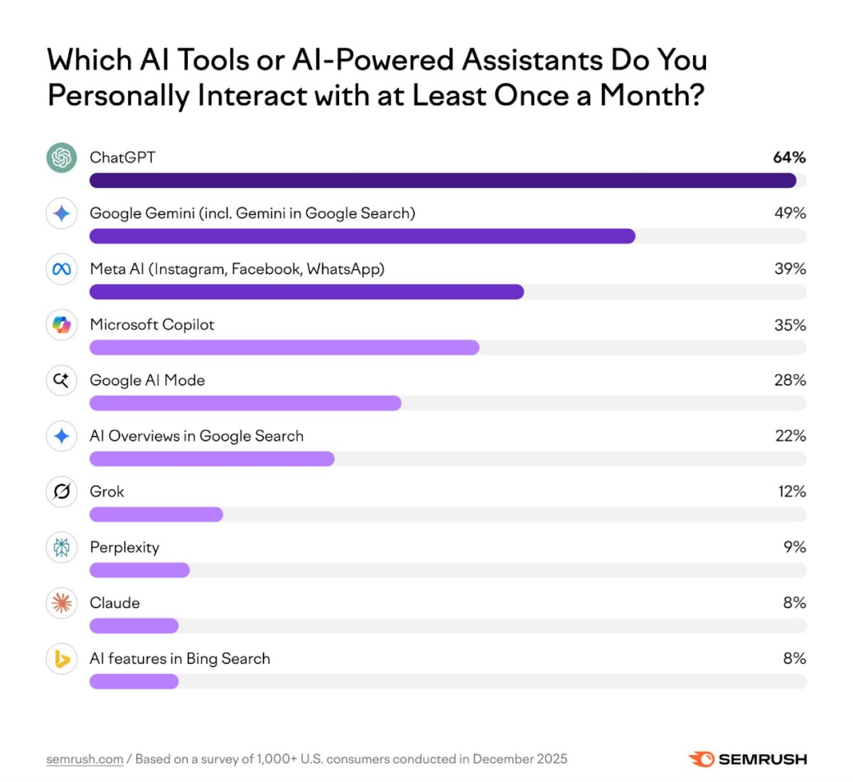 Le marché se cristallise autour de plateformes dominantes, avec ChatGPT (64 % d’usage mensuel) et Gemini (49 %) en tête de file. Pour les marques, l’AEO (Answer Engine Optimization) n’est plus une option mais un impératif de survie. Ne pas être cité par ces modèles équivaut à disparaître d’une part substantielle du marché adressable.