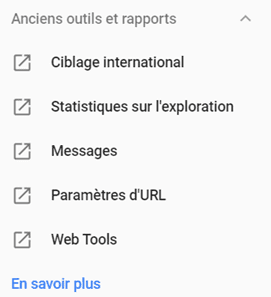 Cet outil, assez ancien, n’a pas été migré sur la nouvelle GSC comme l’outil de désaveu de liens, mais il reste accessible via la section « anciens outils et rapports » en cliquant sur « paramètres d’URL ».