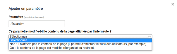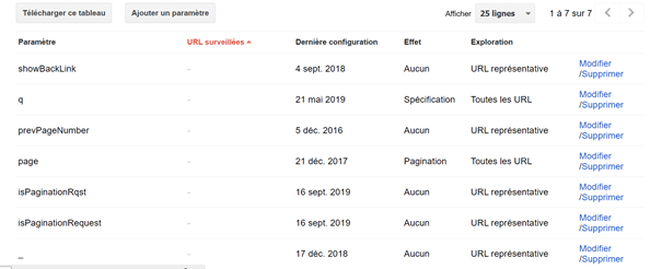 Il permet de lister dans la Search Console les divers paramètres de vos URLs et de les déclarer pour « bloquer l’exploration du contenu en double associé à des paramètres ».
